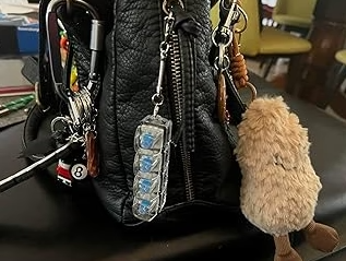 Lo llevo colgado en el bolso como llavero y al principio dudaba porque pensé que sería incómodo o se caería del bolso, pero para nada. Es ligero, se engancha bien y las luces le dan un toque muy chulo por la noche. Muy contenta con la compra.